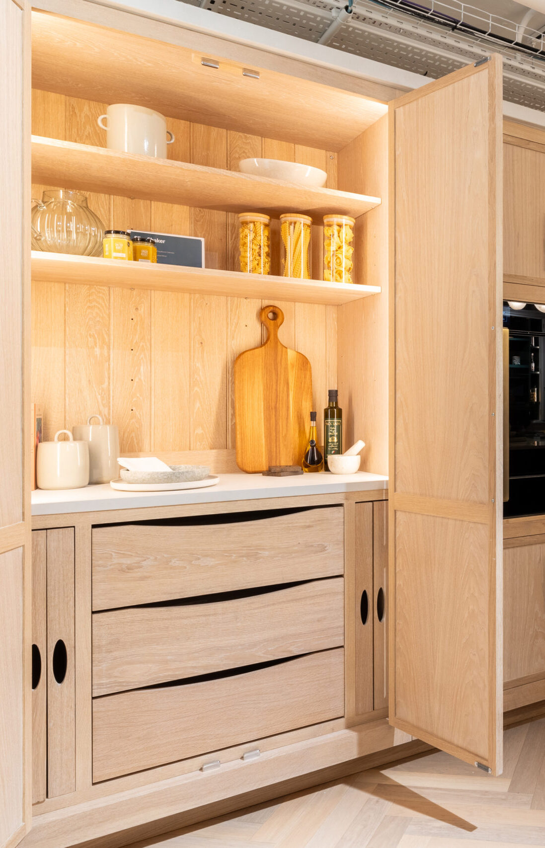 Nothing compares to visiting our Heal’s kitchen showroom to experience the quality of Harvey Jones kitchens. Located on the lower ground floor of the beautiful Heal’s department store, it’s the perfect place to gather design inspiration and experience our bespoke kitchen design in person. Feel the hand-painted finishes and witness the craftsmanship behind every luxury kitchen. While you compare design features and layout ideas, we’ll help you begin shaping a bespoke kitchen to suit your lifestyle. Every conversation with a designer is relaxed and pressure-free, giving you space to explore ideas at your own pace. Our kitchen showroom is the first step towards turning inspiration into reality.