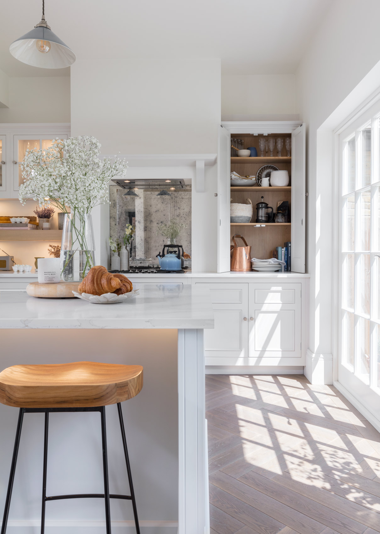 Our showroom has been carefully designed to demonstrate the craftsmanship behind our kitchens and provide examples of clever storage solutions, such as our famous pantry larder, breakfast dressers, and wine and spice racks. There is an extensive selection of finishing touches to suit any style, from top-end appliances and bespoke hardware to customised light fixtures.